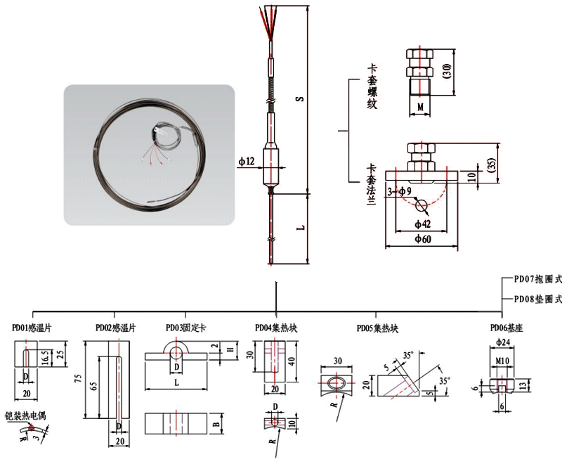 新結構類型快速拆卸熱電偶(熱套式熱電偶)由鎧裝熱電偶和熱電偶組成保護管熱電偶套管,可輕松提取溫度測量熱電偶組件,用于檢測、維護和更換。沒有必要拆下熱電偶保護管并影響正常生產。 熱套式熱電偶標準化尺寸允許客戶準確訂購備件 熱套式熱電偶結構通常用于進口熱電偶。